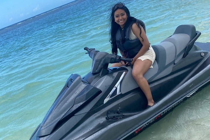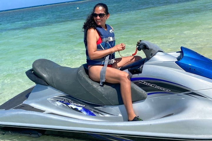 Enjoy a breathtaking moment on a jetski we will stop at the Tropical Bliss beach in Montego Bay where travelers ride the jetski you can relax on the beach overlooking the beautiful water, there is also a bar and they have a wide variety of food choices